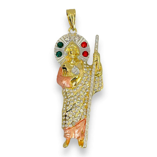 14k oro laminadoPrecio original $6.40 - Precio original $6.40Precio original$6.40$6.40 - $6.40Precio actual $6.40| /En stockDije de San Judas con piedras elegantes tri-color de oro laminado 14k.Tamaño: 3in Joyería de Alta calidad en Oro Laminado de 14K y 18K | Para Mujer...