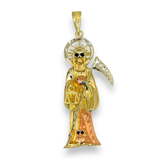 14k oro laminadoPrecio original $6.40 - Precio original $6.40Precio original$6.40$6.40 - $6.40Precio actual $6.40| /En stockDije de la Santa Muerte tri-color de oro laminado 14k.Tamaño: 3.5in Joyería de Alta calidad en Oro Laminado de 14K y 18K | Para Mujer y Hombre Coll...