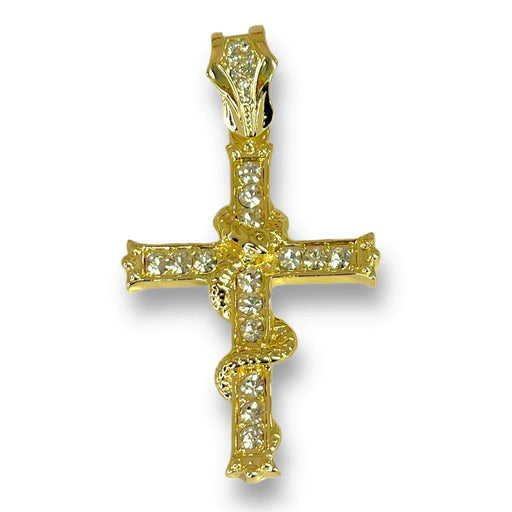14k oro laminadoPrecio original $7.50 - Precio original $7.50Precio original$7.50$7.50 - $7.50Precio actual $7.50| /En stockDije de Cruz diamantada con serpiente de oro laminado 14k.Tamaño: 3in Joyería de Alta calidad en Oro Laminado de 14K y 18K | Para Mujer y Hombre Co...