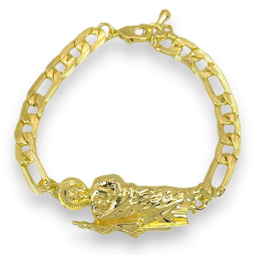 14k oro laminadoPrecio original $4.60 - Precio original $4.60Precio original$4.60$4.60 - $4.60Precio actual $4.60| /En stockPulsera Figaro diamantada de San Judas de oro laminado 14k.Tamaño: 8.5in/ 8mmJoyería de Alta calidad en Oro Laminado de 14K y 18K | Para Mujer y H...